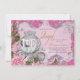 Convite de aniversário de princesa real elegante com bela carruagem real branca e lindas rosas cor-de-rosa e fundo de brilho prateado. Este convite de aniversário real elegante é facilmente personalizado para o seu evento, basta adicionar os seus detalhes no estilo de letra e cor, e texto de sua escolha. Você também pode alterar a cor do fundo. Este é um design impresso sem joias, fitas, brilho, etc. reais.