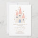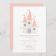 Comemore seu aniversário com este convite temático da princesa, com um castelo mágico com detalhes cor-de-rosa e dourados.