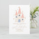 Comemore seu aniversário com este convite temático da princesa, com um castelo mágico com detalhes cor-de-rosa e dourados.