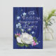 Uma bela rosa branca naturalmente em plena floração combinada com campainhas azuis e pequenos cravos em um fundo drapeado azul profundo emite vibrações de celebração de amor para este convite de festa de aniversário de 45 anos de casamento com ano personalizável na frente. O nome e o texto também são personalizáveis usando o modelo fornecido. Fotografia e design originais por Anura Design Studio.