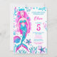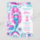 Convite Festa de aniversário da Sereia Rosa e Turquesa