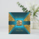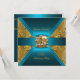 Convite Festa de aniversário Damask Teal Blue Dourado Invi