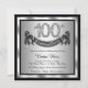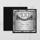Convite de festa de aniversário de 100 anos de prata com números de diamante e faixa de feliz aniversário em um fundo preto e prateado. Este convite de festa de aniversário de 100 anos de prata é facilmente personalizado para o seu evento. Você pode alterar a cor do fundo. Este design impressionante funciona bem para homem ou mulher. Este é um design impresso sem diamantes reais, prata, glitter, etc.