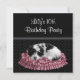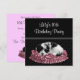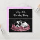 Convite de festa de aniversário de 10 anos para meninas com cachorrinho de bolinhas preto e branco.