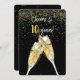 Brinde de champanhe em preto com confetes caindo para o convite da festa de aniversário de 10 anos de casamento.