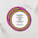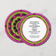 Cores neon brilhantes em verde e rosa formam um desenho simétrico semelhante a uma mandala com padrões intrincados para uma festa de aniversário de 13 anos.