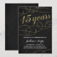 Este convite de festa de aniversário de casamento de 15 anos apresenta floreios de caligrafia bonita, folha de ouro falso e um fundo preto elegante.