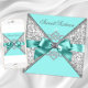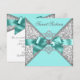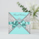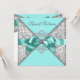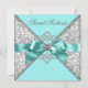 Lindo convite de festa de aniversário de 16 anos com diamantes brancos e azul turquesa com damasco cinza prateado. Adicione seus detalhes na frente e no verso deste convite de festa de aniversário azul turquesa elegante, adicionando detalhes do evento, estilo de fonte, tamanho e cor da fonte e texto.