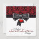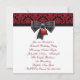 Convite de festa de aniversário de 16 anos vermelho preto damasco coração laço vermelho preto. Adicione seus detalhes na frente e no verso simplesmente escolhendo o botão laranja "Personalizar!" para começar a adicionar os detalhes do seu evento, estilo de fonte, tamanho e cor da fonte e texto. Por favor, note que todos os desenhos de convite que você encontrará no Zazzle são gráficos impressos em papel liso sem joias, laços, relevos, rebaixamentos ou peças ou partes adicionadas.