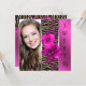 Convite de aniversário de dezesseis anos elegante e cor-de-rosa para festas temáticas de zebra. Este convite de aniversário colorido cor-de-rosa é facilmente personalizado para o seu evento, bastando clicar no botão "Personalizar!" para começar a adicionar os detalhes do evento, o estilo da fonte, o tamanho e a cor da fonte e o texto. Por favor, observe que todos os desenhos de convites que você encontrará na Zazzle são gráficos impressos em papel simples sem joias, laços, relevos, rebaixos ou peças ou partes adicionais.