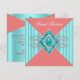 Lindo convite de festa de aniversário de sweet sixteen com laranja coral tangerina e azul turquesa aqua azul. Adicione seus detalhes na frente e/ou no verso deste convite de festa cor-de-coral e azul com um simples clique no botão "Personalizar!" para começar a adicionar os detalhes do seu evento, estilo de letra, tamanho e cor da letra e texto. Por favor, observe que - todos os desenhos de convite que você encontrará no Zazzle são gráficos impressos em papel simples sem joias, laços, partes ou peças em relevo, em alto-relevo ou adicionadas.