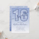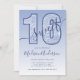 Convite de Festa de Aniversário de 16 Anos em Azul Marinho com Brilho. Este design moderno é acentuado com brilho azul marinho em um fundo ombre azul. Personalize este design personalizado com seus próprios detalhes.