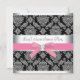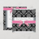Convite de festa de aniversário de 16 anos com damasco rosa e preto. Adicione seus detalhes na frente e no verso adicionando detalhes do evento, estilo de fonte, tamanho e cor da fonte e texto.