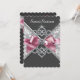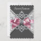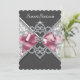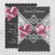 Convite de festa de aniversário de 16 anos com diamantes brancos, laço rosa e damasco rosa e preto. Adicione os detalhes na frente e no verso adicionando os detalhes do evento, estilo de fonte, tamanho e cor da fonte e texto. Este é um design impresso sem diamantes ou laços reais.