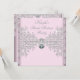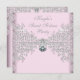 Convite de festa de aniversário de dezesseis anos cor-de-rosa com diamantes prateados. Adicione os detalhes na frente e no verso adicionando os detalhes do evento, estilo de fonte, tamanho e cor da fonte e texto.