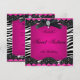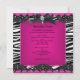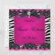 Festa de Aniversário de Dezesseis Anos Sweet 16 Rosa Choque Preto Branco Zebra Foto Vaca Zebra Renda adolescente garotas simples, limpo, design, Festa de Aniversário