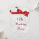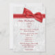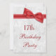 Convites de festa de aniversário de 17 anos elegantes para adolescentes. Convites de festa de aniversário de dezessete anos. Fundo com belo padrão de damasco branco e imagem de um lindo e elegante laço e fita vermelhos. Esses convites glamourosos, chiques e sofisticados são lindamente sofisticados e são decorados / impressos em ambos os lados. POR FAVOR, OBSERVE: Todos os convites no Zazzle têm imagens impressas planas. Imagens de laço e fita compradas de digital-designs-by-elena. Se precisar de ajuda para personalizar seu convite, entre em contato comigo através da minha loja e ficarei feliz em ajudar.