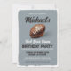 Personalize hoje estes Convites de Festa de Aniversário de 1 Ano com Tema de Futebol Cinza Vintage e organize a festa perfeita para o seu menino. Você pode personalizar facilmente o texto também para uma festa de observação de futebol! A festa de aniversário com tema de futebol para este primeiro aniversário tão marcante certamente será um sucesso! Entre em contato conosco para obter brindes de festa coordenados.