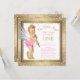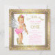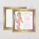 Convite de aniversário de 1 ano para meninas com doce bebê anjo usando sapatos de salto alto e pérolas da mamãe em um lindo fundo rosa e dourado com confetes e diamantes. Você pode personalizar facilmente este convite de aniversário de 1 ano da menina adicionando seus detalhes no estilo de fonte e cor, e na redação de sua escolha. Você também pode alterar a cor do fundo e o ano.