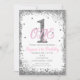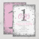 Convite para Festa de Aniversário de 1 Ano das Meninas Rosa e Prata.