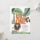 Festa de Aniversário de 1 Ano dos Fofos Animais do Safari Selvagem. Disponível digitalmente e impresso. Doce animais do safari e folhagem da floresta para a celebração do primeiro aniversário do seu pequeno! Personalize facilmente o texto com seus próprios detalhes.
