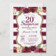 Convite de aniversário de 20 de Surpresa Floral Burgundy para mulheres. Vermelho e Festa de aniversário Dourada. Dourada Glitter. Flor Floral de Aquarela. Burgundy e White Stripes. 13 15 16º 18º 20 21 rua 30 40º 50º 80 de 60º 70 de 100º, qualquer idade. Digital Imprimível.