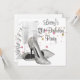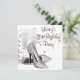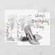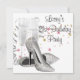 Convite de festa de aniversário de 21 anos com taças de champanhe rosa e branco e saltos altos brilhantes. Adicione seus detalhes na frente e no verso deste convite de festa de aniversário de champanhe rosa adicionando detalhes do evento, estilo de fonte, tamanho e cor da fonte e texto.