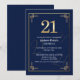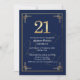 Convite Festa de Aniversário de 21 anos Elegante Azul Dour