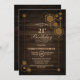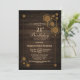 Convite de festa de aniversário de 21 anos com moldura geométrica dourada única e textura de madeira rústica.