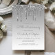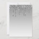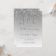 Este convite de festa de aniversário de casamento de 25 anos apresenta uma borda de brilho falso prateado cintilante e um fundo ombre prateado. As palavras "Aniversário de 25 anos" e os primeiros nomes do casal aparecem em uma fonte manuscrita prateada cinza casual, com o restante do texto personalizável em fonte sans serif. O mesmo design de gotejamento de brilho prateado aparece no verso.