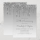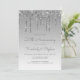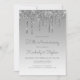 Este convite de festa de aniversário de casamento de 25 anos apresenta uma borda de brilho falso prateado cintilante e um fundo ombre prateado. As palavras "Aniversário de 25 anos" e os primeiros nomes do casal aparecem em letra cursiva prateada cinza casual, com o restante do texto personalizável em fonte sans serif. O mesmo design de gotejamento de glitter prateado aparece no verso.