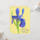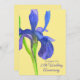 Um convite de festa de aniversário de 25 anos de casamento decorado com uma flor de íris pintada à mão em aquarela em tons elegantes de azul real e roxo em um fundo amarelo suave. O íris é uma flor que representa o aniversário de 25 anos de casamento. Na Linguagem das Flores, o íris representa fé, valor e sabedoria.