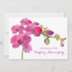Um convite de festa de aniversário de 25 anos de casamento decorado com uma orquídea pintada à mão em cores ricas de rosa fúcsia e roxo ameixa. As orquídeas rosa são a flor tradicional do 14º e 25º aniversário de casamento de um casal. Na Linguagem das Flores, a orquídea representa respeito e elegância.