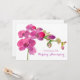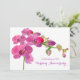 Um convite de festa de aniversário de 25 anos de casamento com orquídea decorado com flores de orquídea pintadas à mão em tons ricos de rosa fúcsia e roxo ameixa. As orquídeas rosa são a flor tradicional do 14º e 25º aniversário de casamento de um casal. Na Linguagem das Flores, a orquídea representa respeito e elegância.