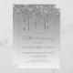 Este convite de festa de aniversário de casamento de 25 anos apresenta uma borda de brilho falso prateado cintilante e um fundo ombre prateado. As palavras "Aniversário de 25 anos" e os primeiros nomes do casal aparecem em uma fonte manuscrita casual cinza prateado, com o restante do texto personalizável em fonte sans serif. O mesmo design de gotejamento de glitter prateado aparece no verso.