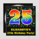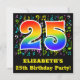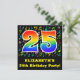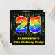 A frente deste design de convite de aniversário divertido, excitante e vibrante apresenta um grande número "25" com um padrão inspirado no gradiente do espectro arco-íris, junto com um nome editável e a mensagem "25 Festa de aniversário!". Parte do plano de fundo apresenta um padrão divertido de várias notas e símbolos de música com uma variedade de cores e tamanhos. A parte traseira contém informações personalizadas sobre o evento para o qual os convidados potenciais estão sendo convidados. Cartões de convite para comemoração de aniversário, úteis e personalizados, como este, podem ser enviados a potenciais convidados de uma celebração que está a ser feita para celebrar o 25 de um compositor de música, de um cantor, de um músico ou de outra pessoa. [~Z0000427]