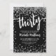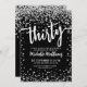 Apresentando um convite de festas chic e comemorativo, perfeito para marcar este marco especial no estilo. O elegante design apresenta uma mistura de bugigangas prateadas, adicionando um toque de diversão e festividade. No topo, "Trinta" é exibido com destaque na caligrafia em negrito, definindo o tom para uma celebração inesquecível. O texto combina scripts e fontes modernas simples em um esquema elegante de cores preto e branco, dando ao convite uma vibração clássica, mas moderna. O brilho continua atrás, adicionando um toque extra de brilho ao design geral. Este convite é perfeito para celebrar 30 anos de vida com talento. As cores da fonte e do plano de fundo podem ser personalizadas para corresponder ao seu estilo. Por favor, note que é uma falha de brilho, sem folha de alumínio ou cinza. Aniversário de 30 anos de Negra E Branca Convocando Glitter Prateado Confetti Diversão De Na moda Sassy Cute. Disponível como um convite impresso ou como um convite digital para download que você pode enviar por e-mail ou que foi impresso localmente!