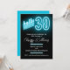 Junte os participantes do partido com este convite de aniversário de 30 anos de néon azul aqua.