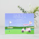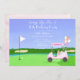 Este convite de festas de aniversário de 30 anos de golfe foi desenhado com o convidado de honra no coração do seu charme. Ele apresenta um coração colocando verde e um alfinete de bandeirola na brisa. Um carrinho de golfe, festivamente adornado com champanhe, presentes, balões e um bolo de aniversário personalizado, estabelece a cena para celebração. Uma festa divertida que repousa sobre o saco de golfe, acrescentando um detalhe divertido e festivo.
