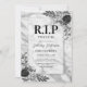 Convites engraçados para festa de 30 anos com uma lápide prateada cinza, flores em estilo de aquarela rústica e um modelo de texto de celebração de aniversário elegante que é fácil de personalizar.
