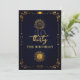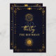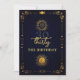 Um modelo aniversário de 30 anos moderno, elegante e chic com um tema de tarô, adivinho, com fundo marinho, um quadro deco com elementos de tarô: sol, lua, cálice etc. e uma camada de ouro (esse é um efeito digital, não uma folha real). Um design aniversário de 30 anos de tarô divertido para uma mulher moderna no seu trigésimo aniversário. Uma escolha encantadora para uma festa divertida de leitura de palma, contar a fortuna, olhar para o horóscopo e outras atividades divertidas e místicas.