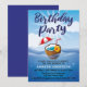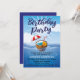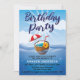 Convite de Festa de Aniversário de 30 Anos. Tema tropical, design com características do oceano e bebida de coco flutuante.
