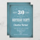 Convite de festas aniversário de 30 anos. Design retrô elegante em azul claro e branco. Pode ser personalizado em qualquer idade!