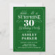 Convite de festas de aniversário de 30 anos surpresa. Design simples em verde e branco. Celebração surpresa para homem ou mulher. Pode ser personalizado em qualquer idade!