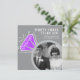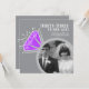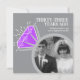 Convide amigos e familiares para uma festa de aniversário de casamento de ametista especial ou celebração de jantar com estes convites "então e agora" com um anel de eternidade gráfico com brilho cinza, roxo ametista e branco, e duas fotos. Personalizados com suas próprias fotos do dia do casamento do casal e uma foto atual no verso, e adicione suas próprias palavras de celebração, data da festa e local. Outros itens correspondentes estão disponíveis. Arte e design gráfico do anel original por www.mylittleeden.com na Zazzle.