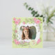 Convite de festa de aniversário de 3 anos para meninas com rosas cor-de-rosa e verde apresenta rosas cor-de-rosa bonitas e moldura de foto branca elegante na frente. Este convite de festa de aniversário de meninas com rosas cor-de-rosa é elegante e feminino e é facilmente personalizado com sua foto e detalhes do evento, simplesmente adicionando os detalhes do evento, estilo de fonte, tamanho e cor da fonte e texto.