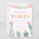 As cores brilhantes e felizes do sol para esta Fiesta mexicana inspiraram o design de convite de festas aniversário de 3 anos.