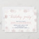 Celebre o seu dia especial com este convite de festa de aniversário elegante que apresenta uma bela tipografia e padrões de fundo em textura de rosa dourado falso.