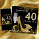 Convite de festa de aniversário de 40 anos preto e dourado com taça de champanhe elegante e sapatos de salto alto dourados. Você pode personalizar facilmente este convite de festa de aniversário de 40 anos preto e dourado para o seu evento, simplesmente adicionando seus detalhes no estilo de fonte e cor, e na redação de sua escolha. Você também pode alterar a cor do fundo.