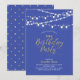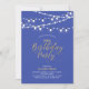Celebre um dia especial com este convite de aniversário dourado chique! Este design apresenta luzes de corda e uma tipografia de texto dourado estilosa com um fundo azul roxo. Você pode personalizar o texto para qualquer idade/aniversário de marco. Mais convites de aniversário adulto e suprimentos para festas estão disponíveis na minha loja BaraBomDesign.